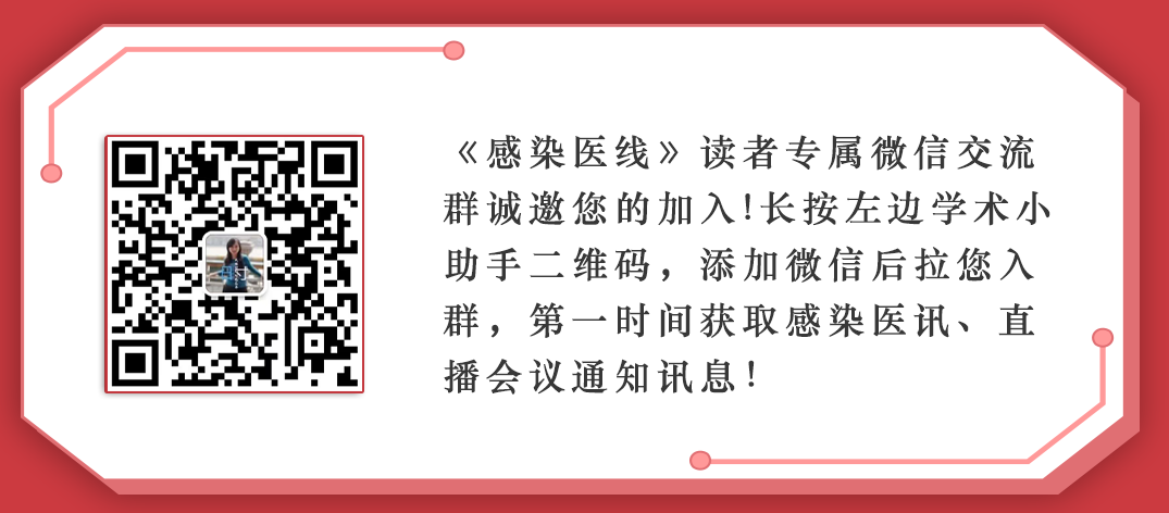 凡署名原创的文章版权属《感染医线》所有,欢迎分享、转载(开白可后台留言)。本文仅供医疗卫生专业人士了解最新医药资讯参考使用,不代表本平台观点。该等信息不能以任何方式取代专业的医疗指导,也不应被视为诊疗建议,如果该信息被用于资讯以外的目的,本站及作者不承担相关责任。